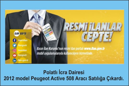 Polatlı İcra Dairesi 2012 model Peugeot Active 508 Aracı Satılığa Çıkardı.