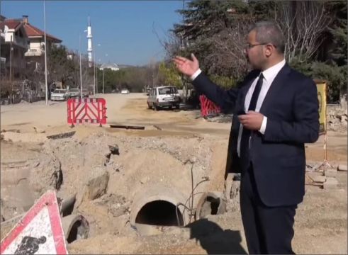 Çivril Çarşı Mah. Adnan Keskin Caddesi üzerindeyiz. Bu cadde üzerinde İsmet İnönü Bulvarı, Atasay Kamer Caddesi ve Kadir Kameroğlu Caddesinin birleştiği noktada yağmur suyuyla ilgili büyükşehir belediyemiz DESKİ tarafından yapılan çalışmalar var. Burada binlik dediğimiz büyük borularla ilçemizin pazaryerinden başlayıp otogarın olduğu bölgeye kadar bütün hatta yağmur suyu boruları döşeniyor. Bu nedenle bu güne kadar doğalgaz, elektrik hatlarının yer altına alınması ve yağmur suyu hatları nedeniyle bir üst yapı çalışması, yol çalışması gerçekleştiremedik. İnşallah bu yağmur suyu hatları döşendikten sonra, yine büyükşehir belediyemiz tarafından yapılacak bir üst yapı çalışmasıyla İsmet İnönü Bulvarı sıcak asfaltla kaplanacak ve Çivril’in girişindeki vizyon caddelerinden bir tanesini güzel bir hale getireceğiz. Çivrilimiz için gece gündüz çalışmaya devam ediyoruz.