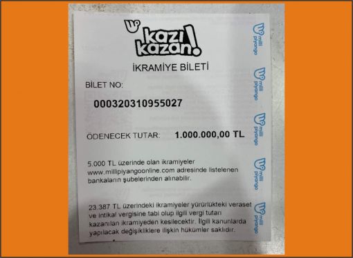 Çivril’de şans oyunları oynanan Arslan Market’te bir müşteriye kazı kazandan bir milyon lira çıktı. Talihli kişinin ismi açıklanmazken Arslan Market’in sahibi Şerif Ali Arslan “İş yerimizden sürekli şansını deneyen talihli müşteri, daha önce bir kaç defa küçük paralar kazanmıştı. İlk defa 1 milyon gibi büyük bir ikramiye isabet etti. Kendisini tebrik ediyor, parasını iyi günlerde kullanmasını diliyoruz” ifadelerini kullandı.