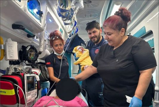 Çivril Devlet Hastanesi’nden sevk edilen gebe hastanın doğumu nakil sırasında başladı. Ebe Emine Kabasakal’ın başarılı müdahalesiyle doğum sorunsuz gerçekleşti.