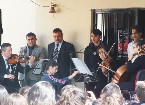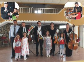 ÇİVRİL KLASİK MÜZİĞİ AYAKTA ALKIŞLADI Çivril’liler Pazartesi günü gerçekleşen konserlerde klasik müzik ile tanıştı. İlk olarak Nevişet Kameroğlu Ortaokulunda gerçekleşen konserde 1. Kemanda Gündüz Öğüt, 2. Kemanda Barış Öğüt, Viyolada Hande Taban, Viyolonselde Başak Yalçın sahne aldı. Konsere okulun öğrenci ve öğretmenlerinin yanı sıra mahalle sakinlerinden de yoğun katılım oldu.