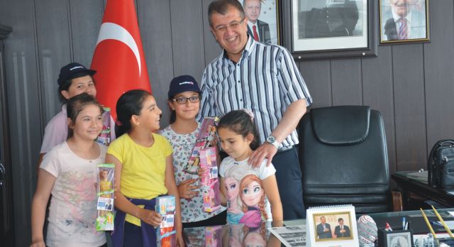 Çivril Belediye Başkanı Dr. Gürcan Güven makamında ağırladığı öğrencilere oyuncak hediye ederek sevindirdi.